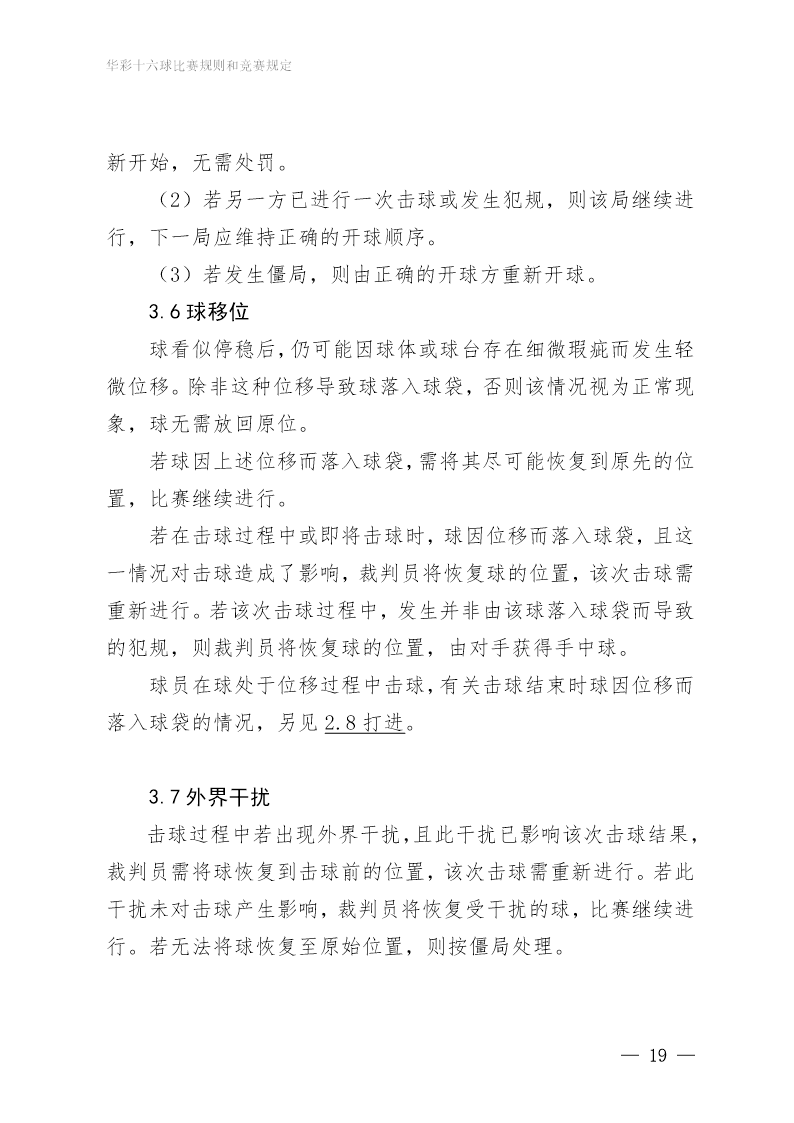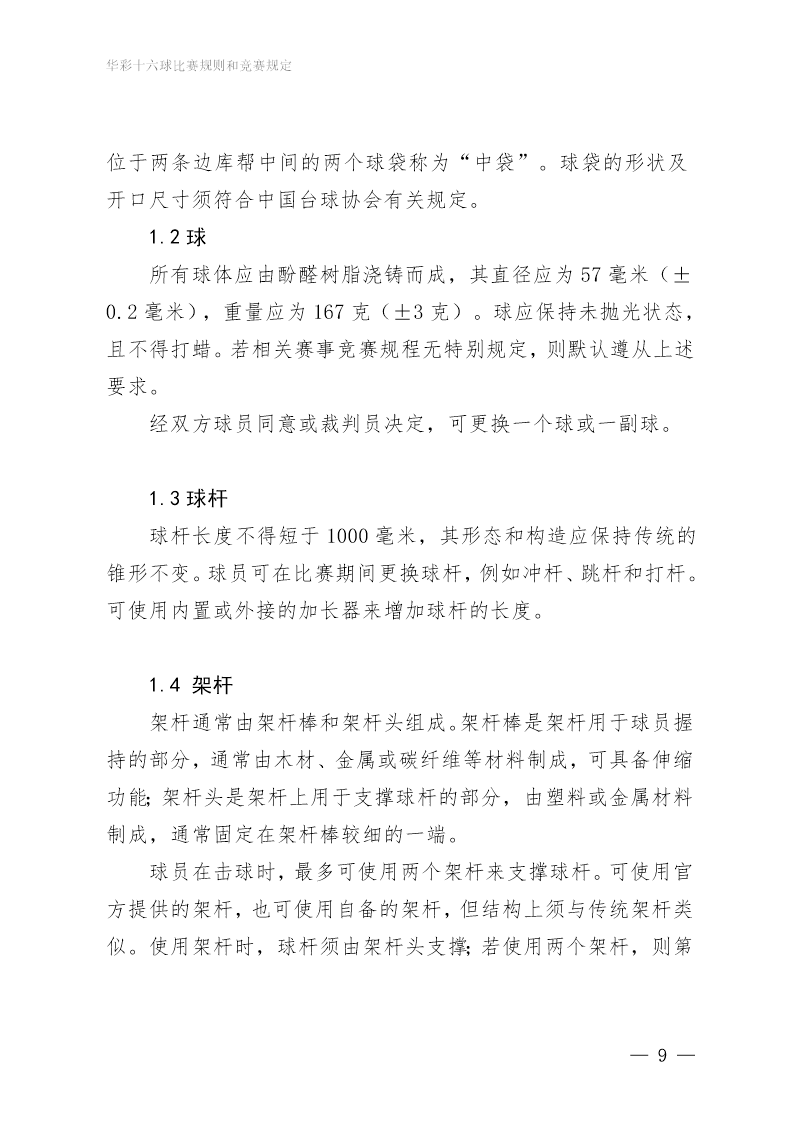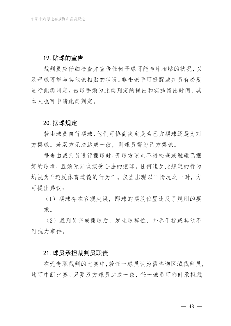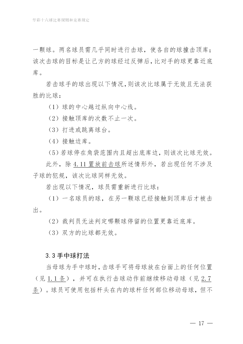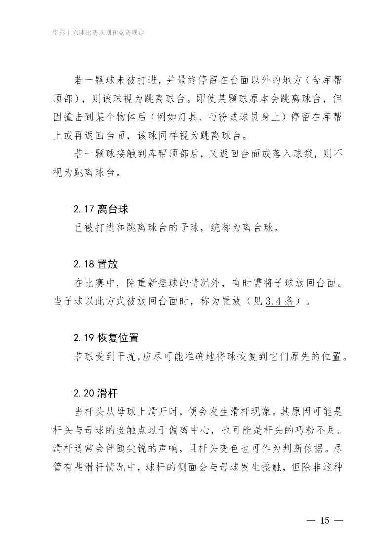 中国台球协会关于印发《华彩十六球比赛规则和竞赛规定(试行)》的通知