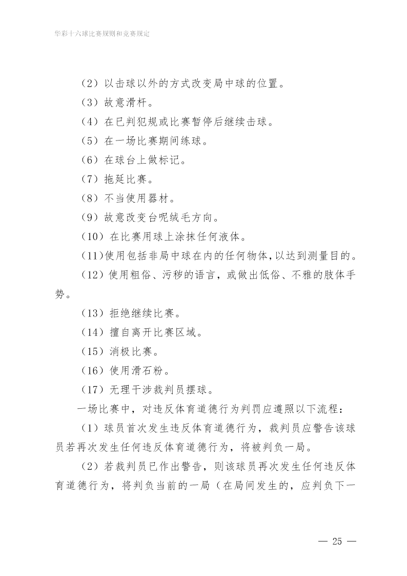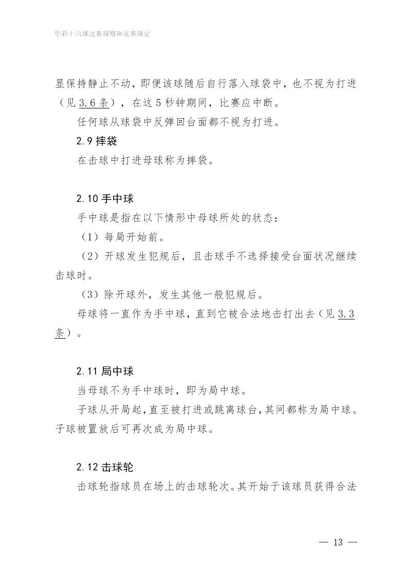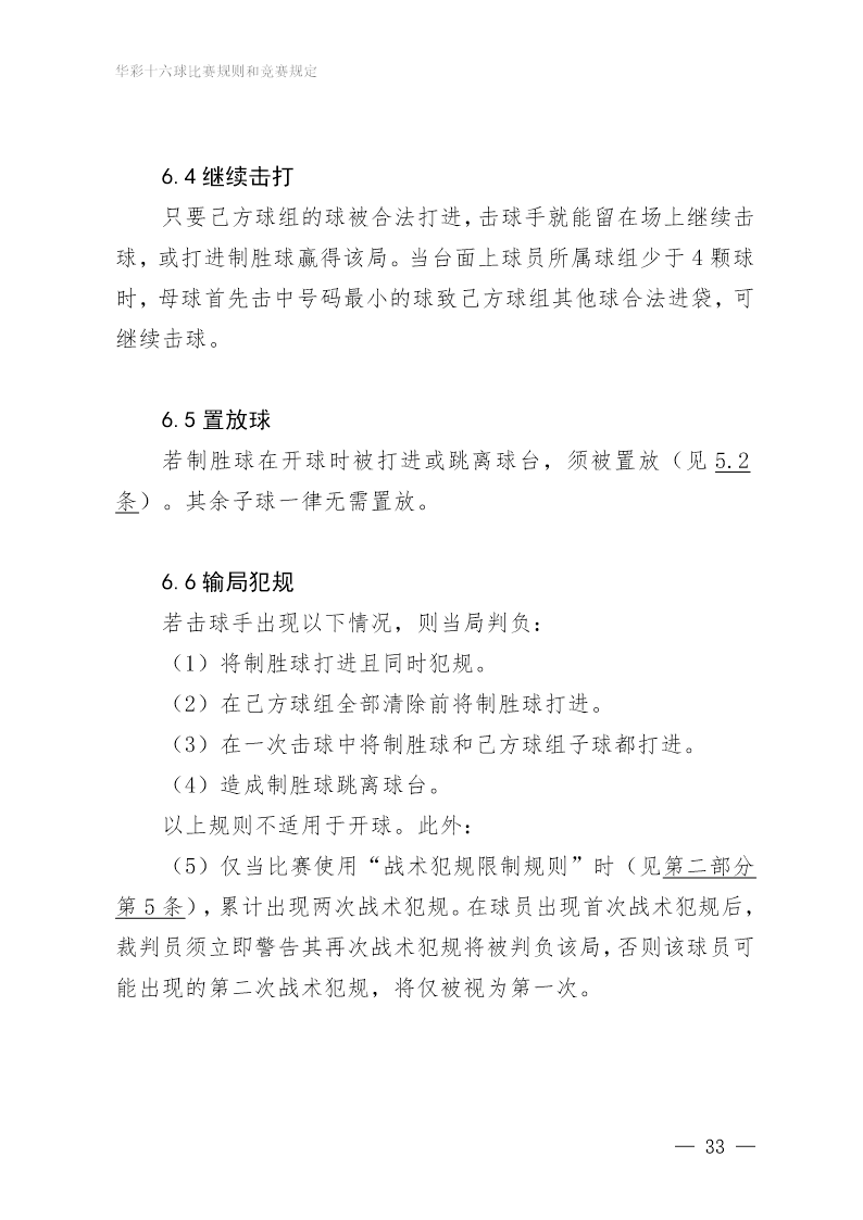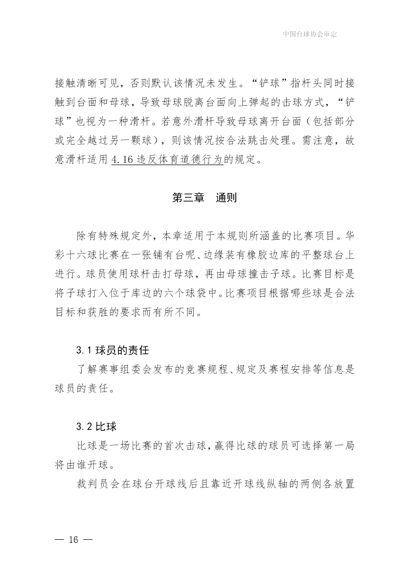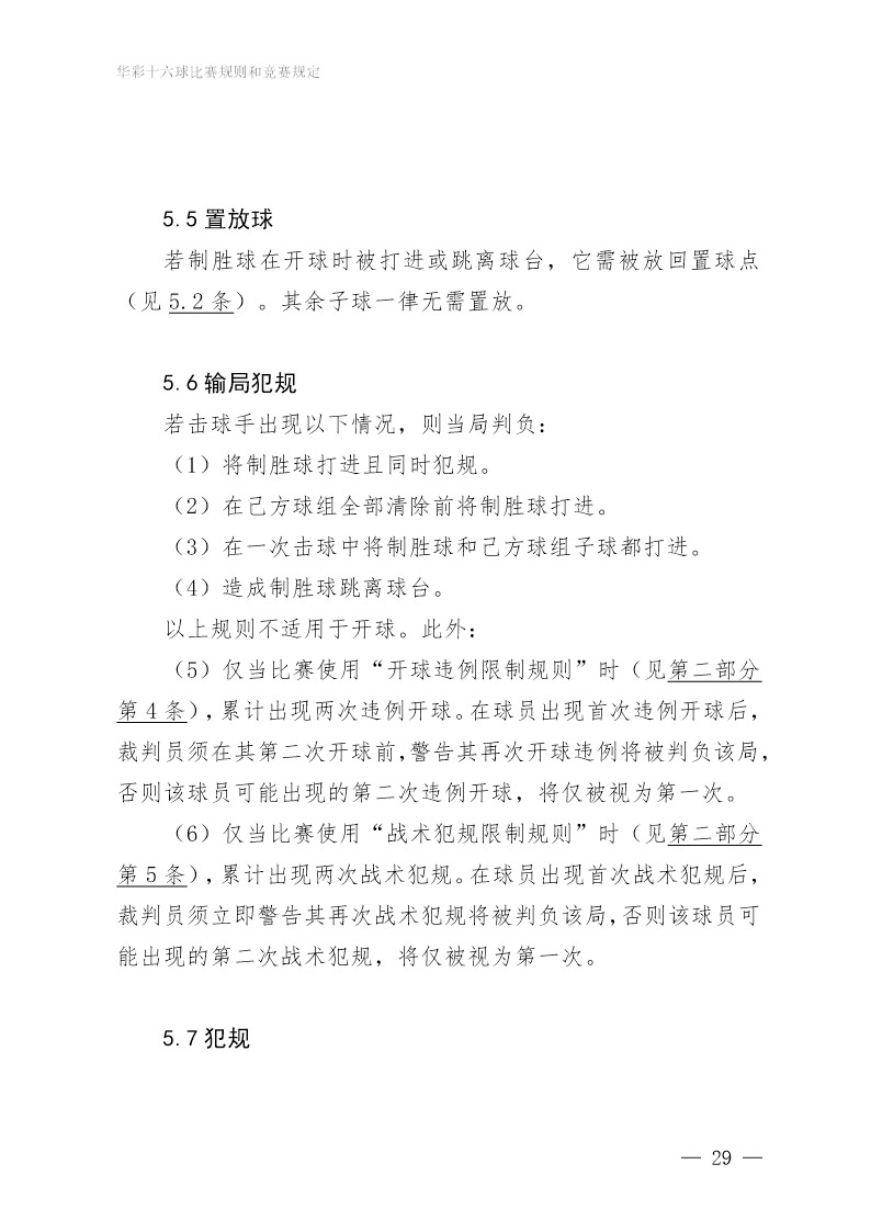 中国台球协会关于印发《华彩十六球比赛规则和竞赛规定(试行)》的通知