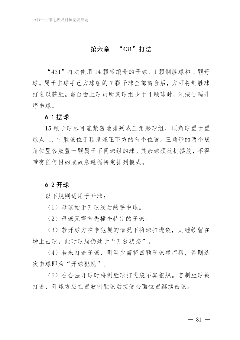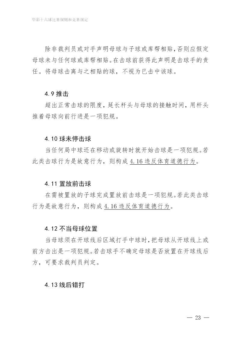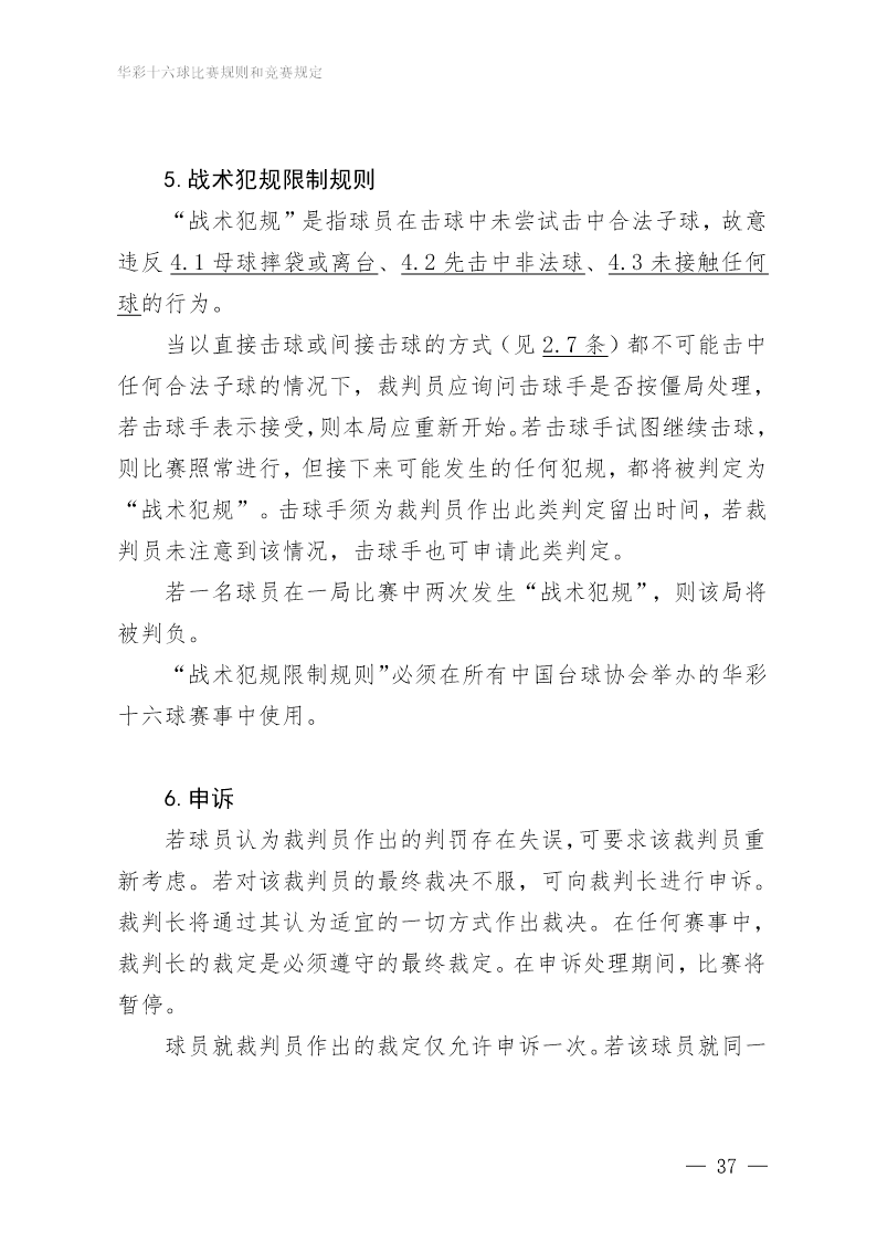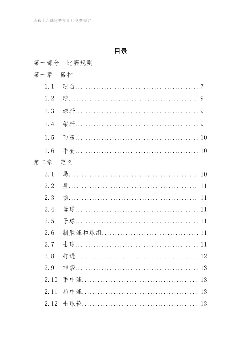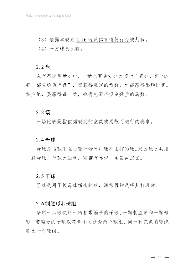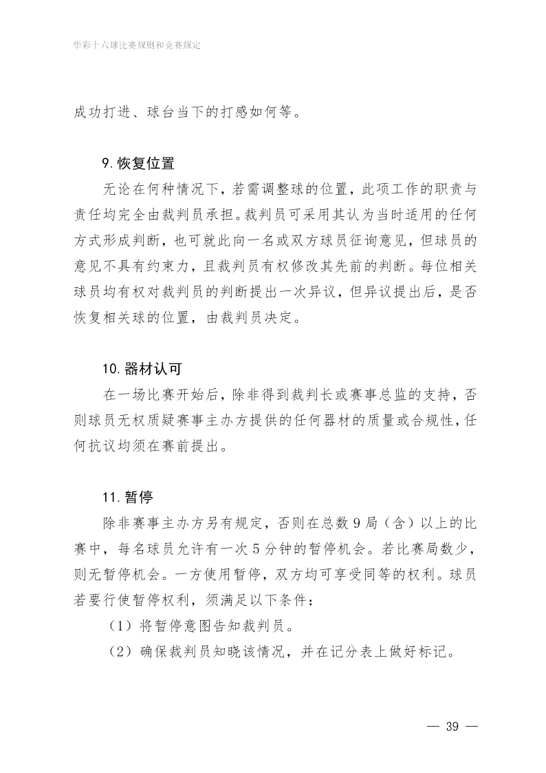中国台球协会关于印发《华彩十六球比赛规则和竞赛规定(试行)》的通知