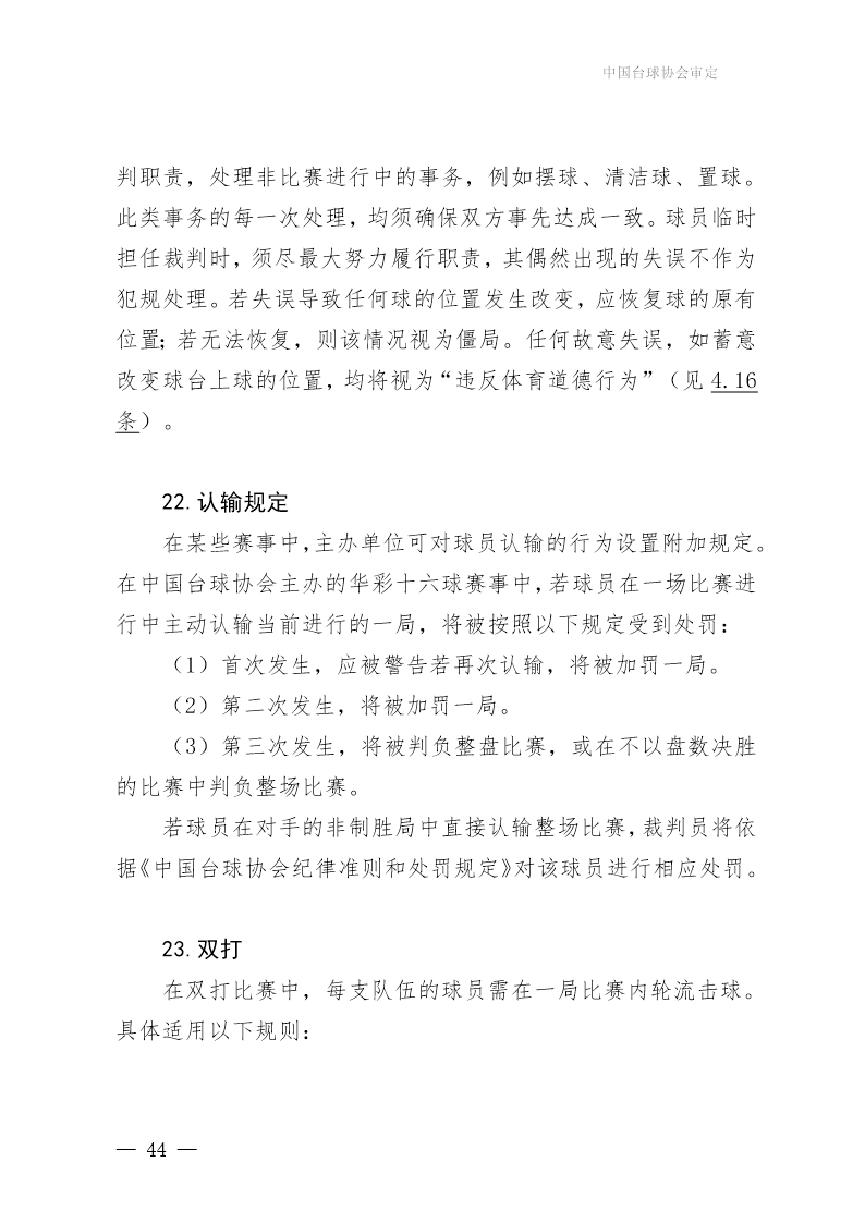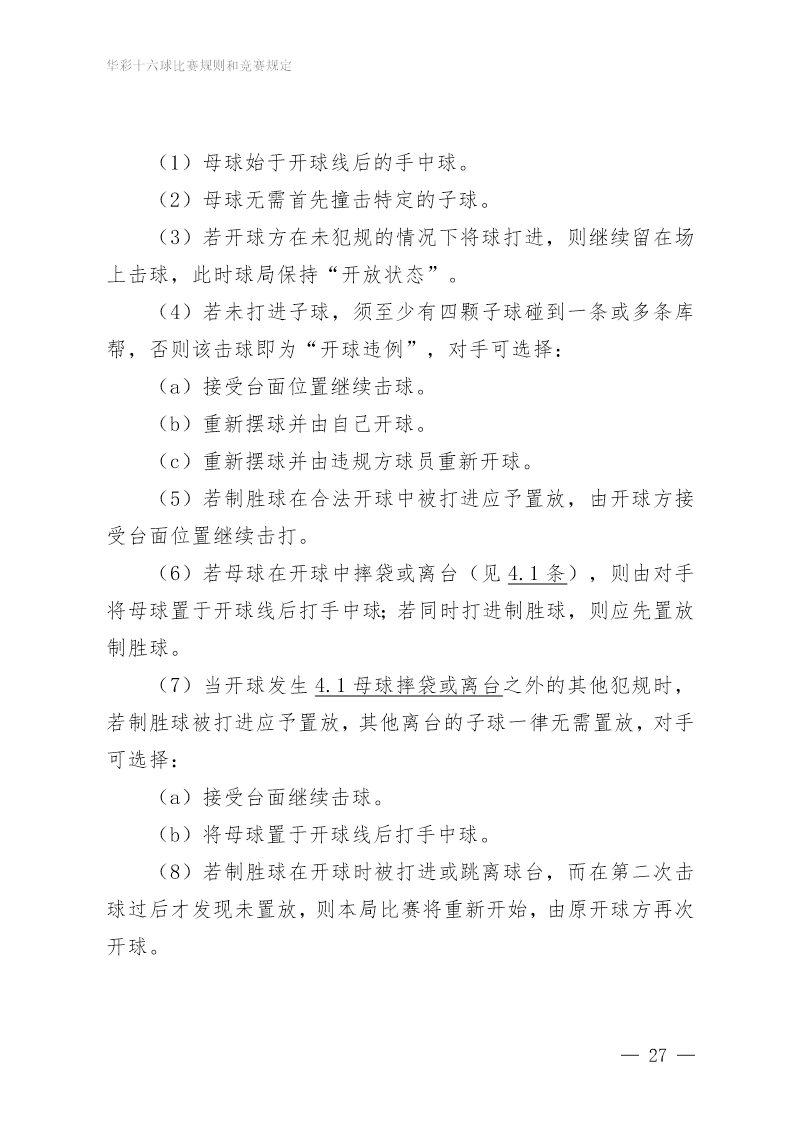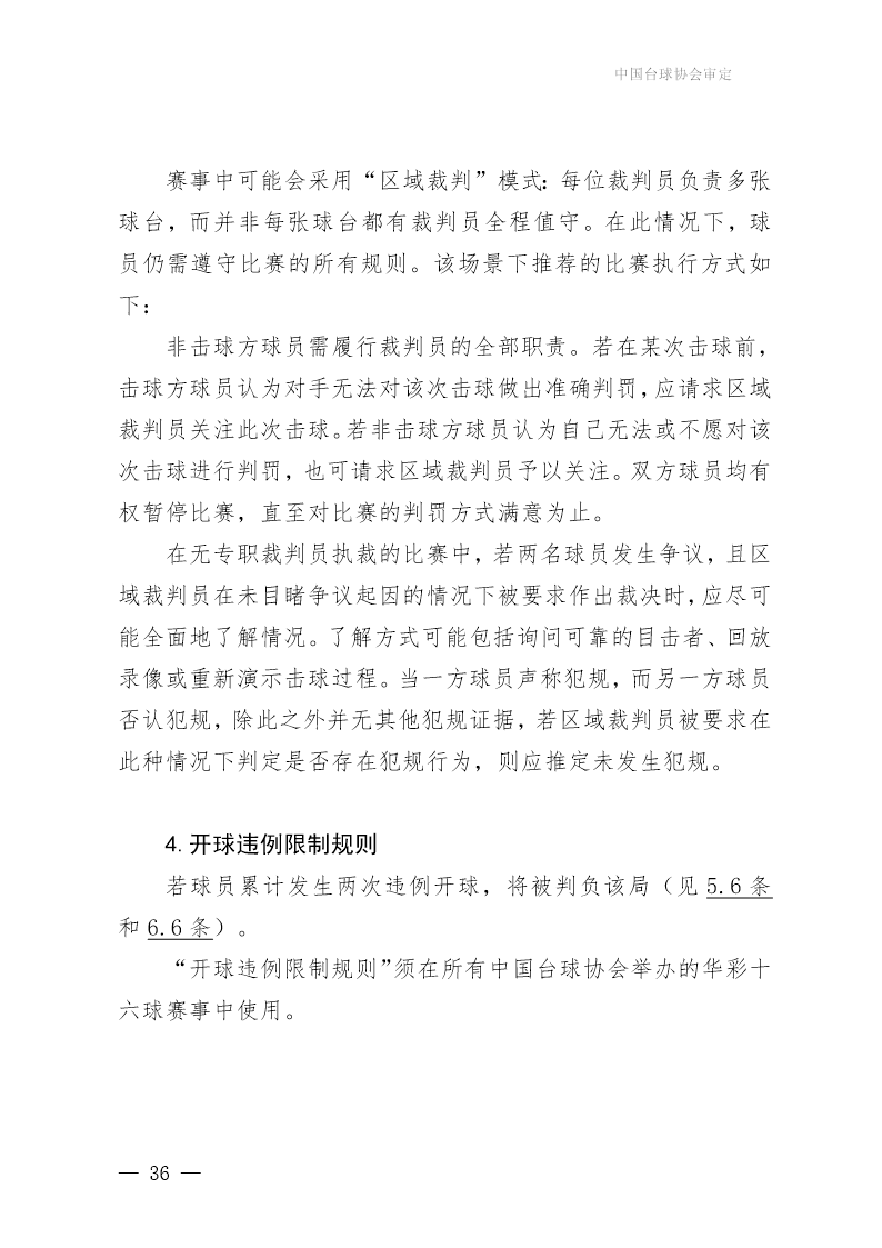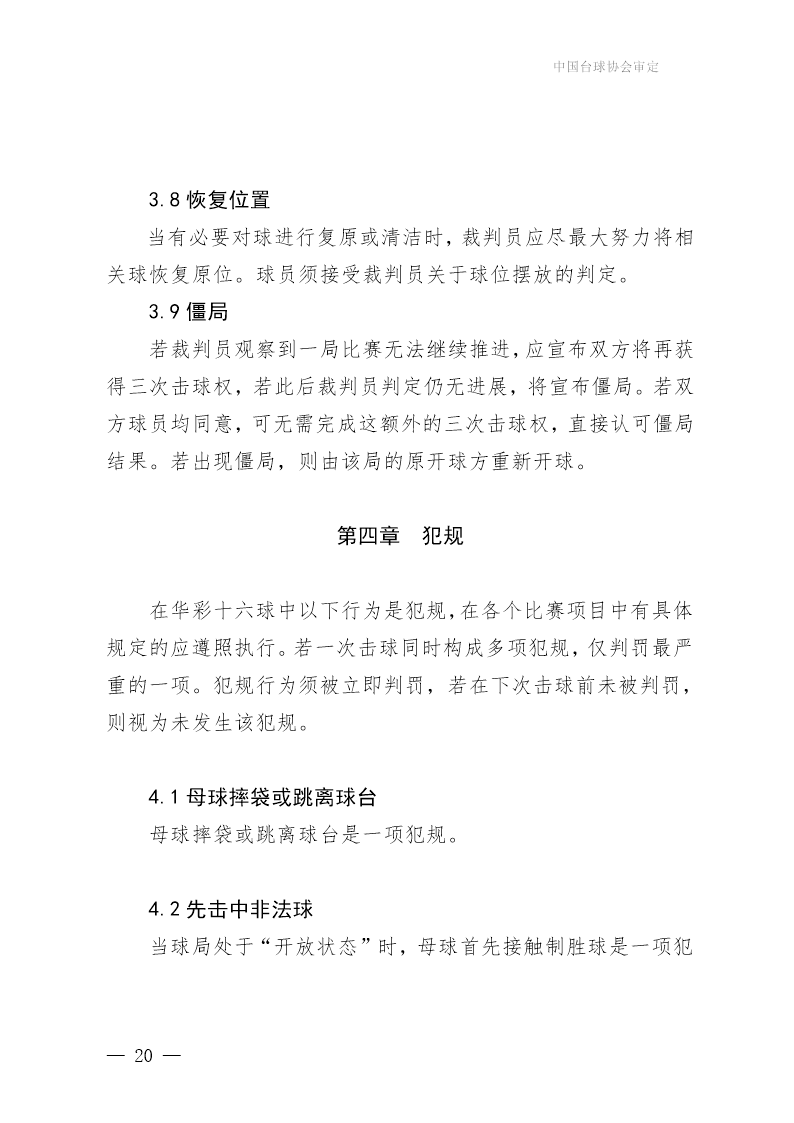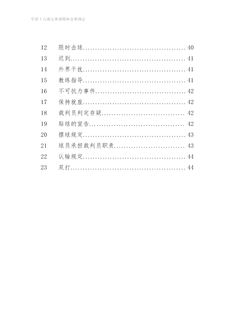 中国台球协会关于印发《华彩十六球比赛规则和竞赛规定(试行)》的通知